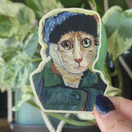 Cat sticker designed inspired by Van Gogh's famous self portrait painting.