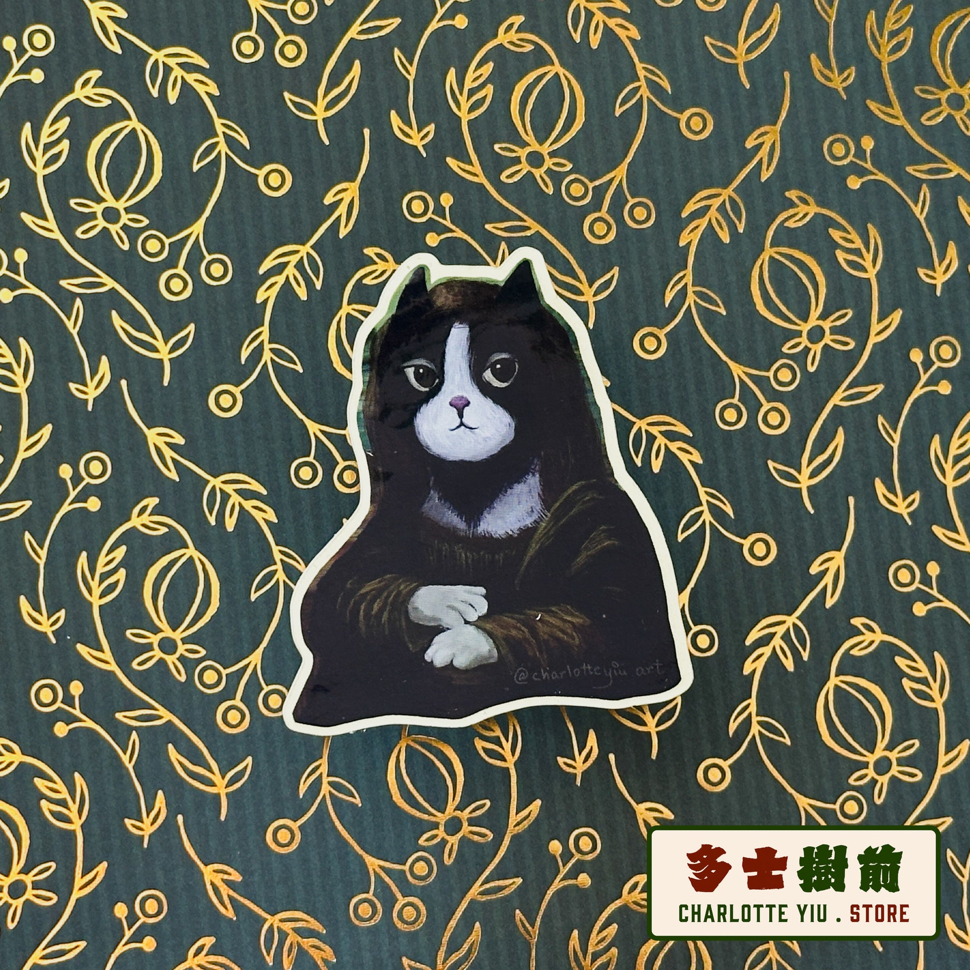 Cat sticker designed inspired by the famous painting <Mona Lisa> by Leonardo da Vinci.